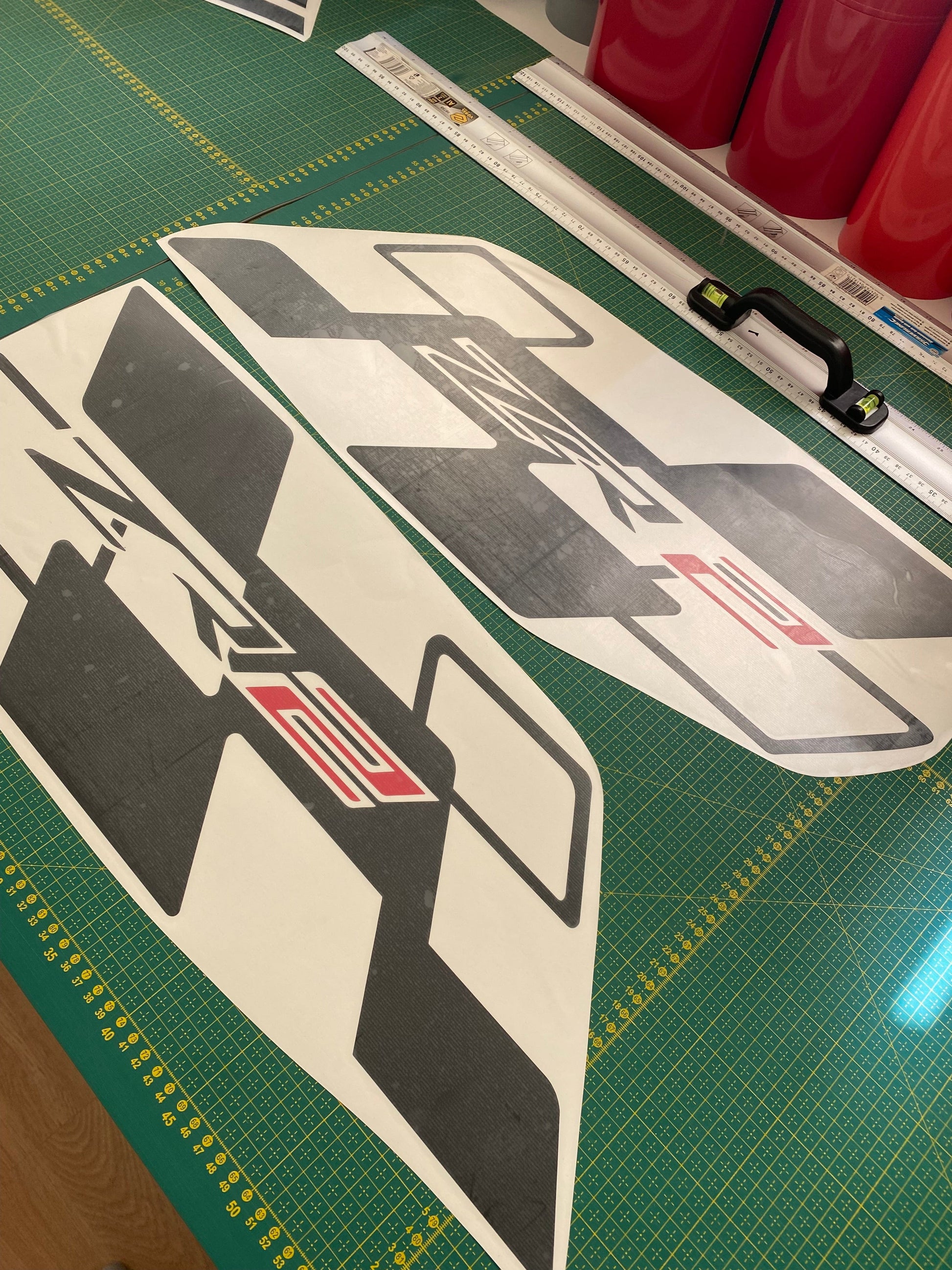 2 autocollants, côté gauche et côté droit. Pré-transfert, prêt à appliquer.